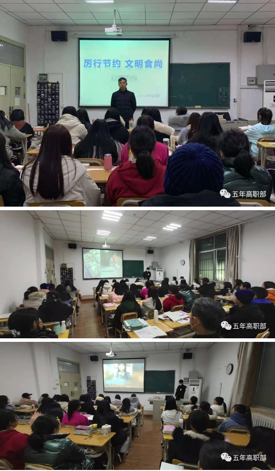 近期,在院团委的统一部署下,为贯彻落实总书记的重要指示,珍惜粮食,对餐饮浪费行为说“不”,五年制高职部团工委组织各班团支部分别开展了“厉行节约文明食尚”主题团日活动。
