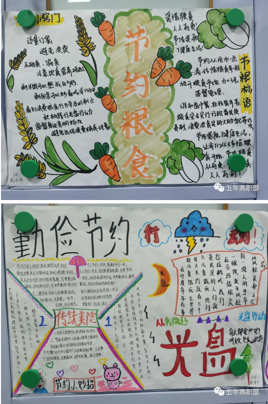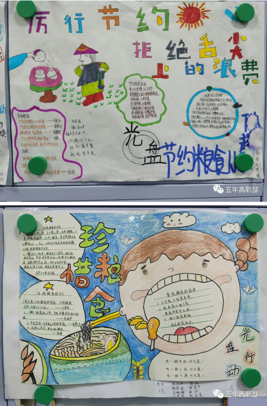 五年制高职部各班分别通过主题团日、手抄报展示、微信小程序“光盘打卡”等方式开展了节约粮食的主题宣传教育活动。主要目的就是让学生知道一粥一饭当思来之不易,半丝半缕恒念物力维艰,养成节约习惯不仅关乎传统美德的传承,对特殊时期国家粮食安全战略的实施也至关重要。浪费不以量小而为之,节约不以微小而不为,倡导大家把勤俭节约的理念化为日常生活中厉行节俭的实际行动,做践行节俭理念的新时代文明学生。以期通过教育宣传活动帮助广大师生牢固树立节约为荣、浪费为耻的理念,将节俭风尚融入日常生活,为创建节约型校园做出自己的贡献。(五年制高职部/韩凯军 供稿)