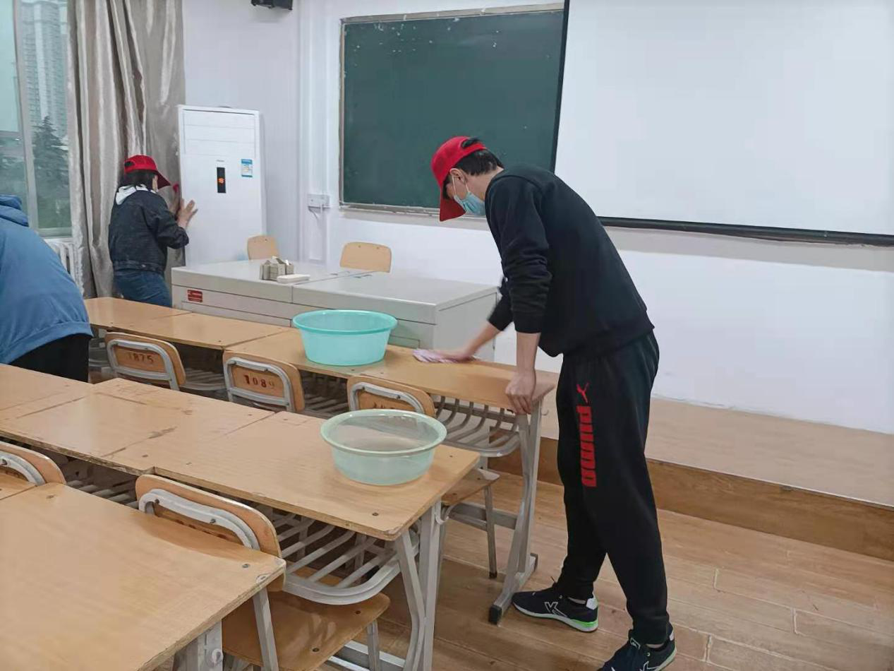 团学干部和志愿者们积极参与,分别前往教学楼、财经系会计实训室及各个教室,针对地面、桌面、门窗等进行了认真仔细的清洁消毒,帮助师生营造了整洁卫生的学习环境。