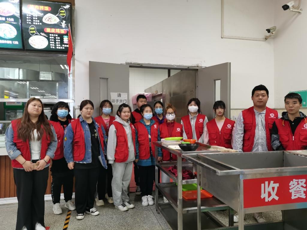 院学生会志愿者们于三月中旬在学生餐厅开展志愿服务活动,帮助餐厅工作人员收拾餐具、打扫卫生,引导同学们文明就餐,节约粮食,拒绝浪费,以实际行动创建文明和谐校园。
