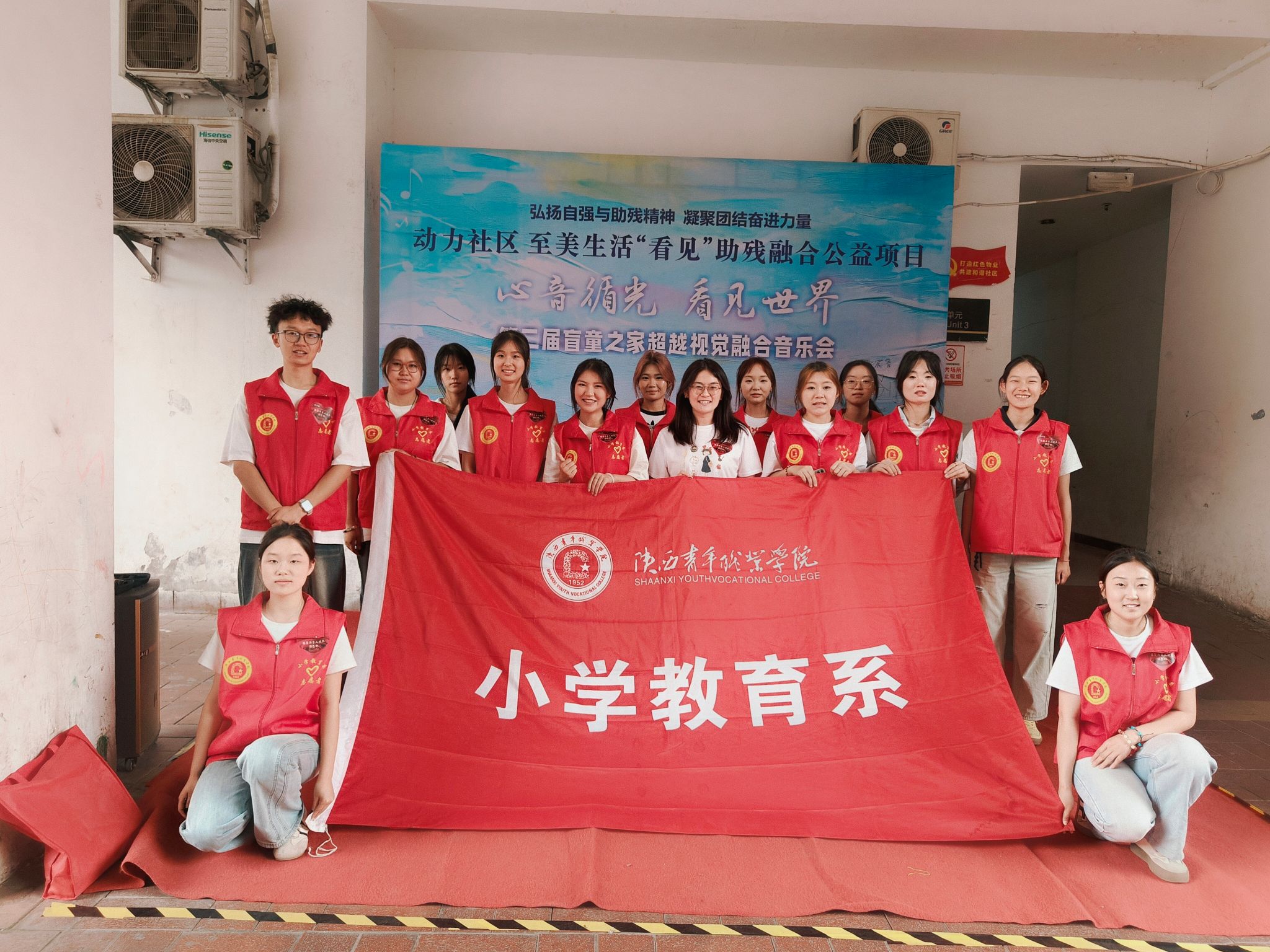 5月17日,在第35个全国助残日来临之际,受陕西白手杖盲童之家邀请,小学教育系团委、学生会组织13名志愿者参加了第二届盲童之家超越视觉融合音乐会,活动由小学教育系团委书记张婷带队。